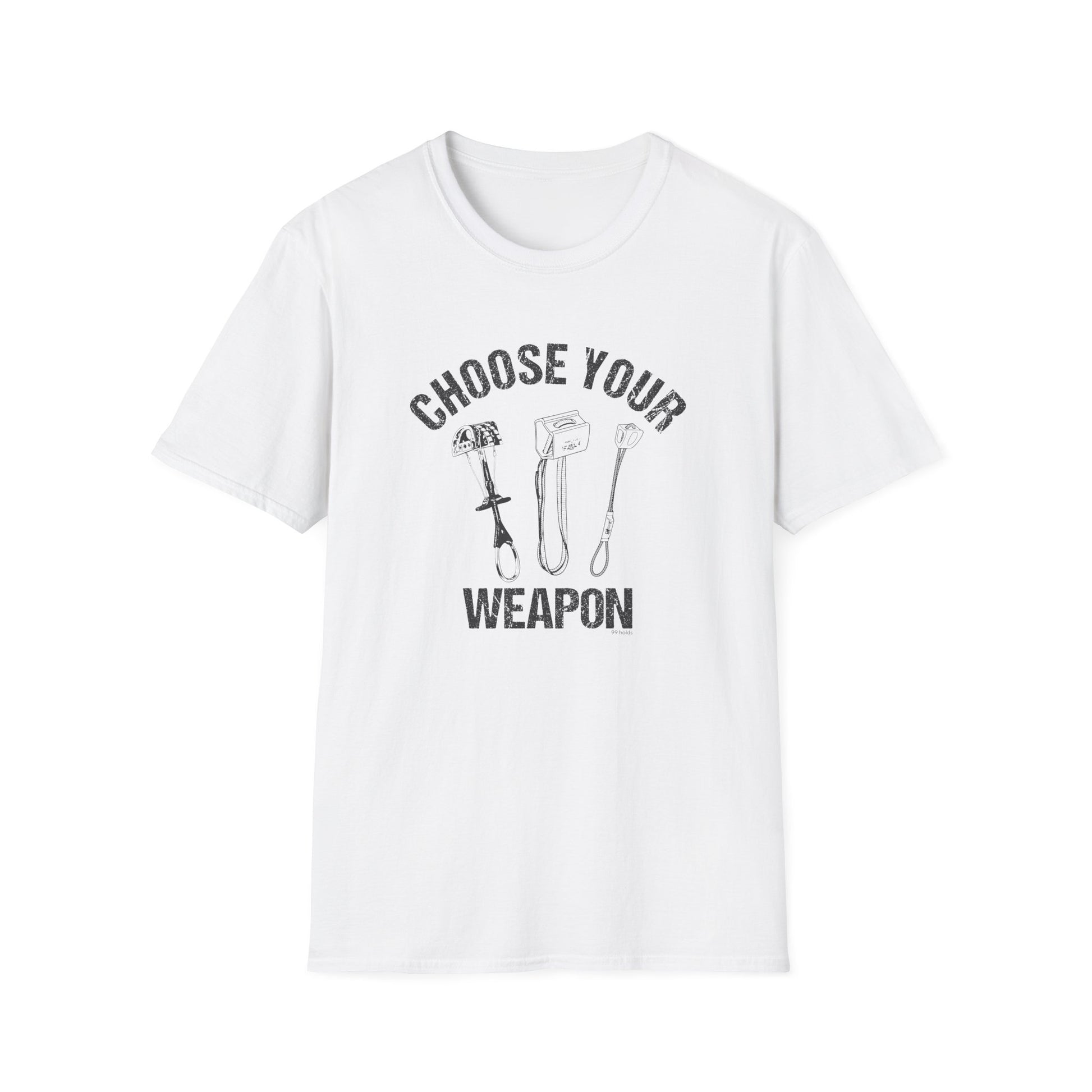 Choose Your Weapon Climbing T-Shirt | Funny Climber Tee | Rock Climbing Gift | 99 Holds